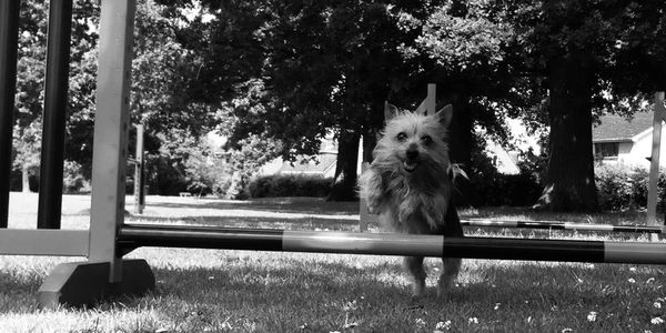 "Poppy is 9 years old and never done agility before. When working with Vinny he had tought her right from the beginning to enjoy the training. She picked up agility really quickly from doing the jumps to tunnels! More importantly she loved every bit of it as you can see in the picture. Poppy continues to do agility every week as she enjoys it so much! Vinny is outstanding with the work he does and i'm very grateful for what he has done with poppy!"